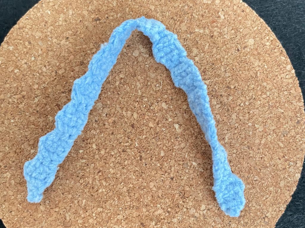 Fasten off here, then crochet the other leg. Do not fasten off after crocheting the second leg.