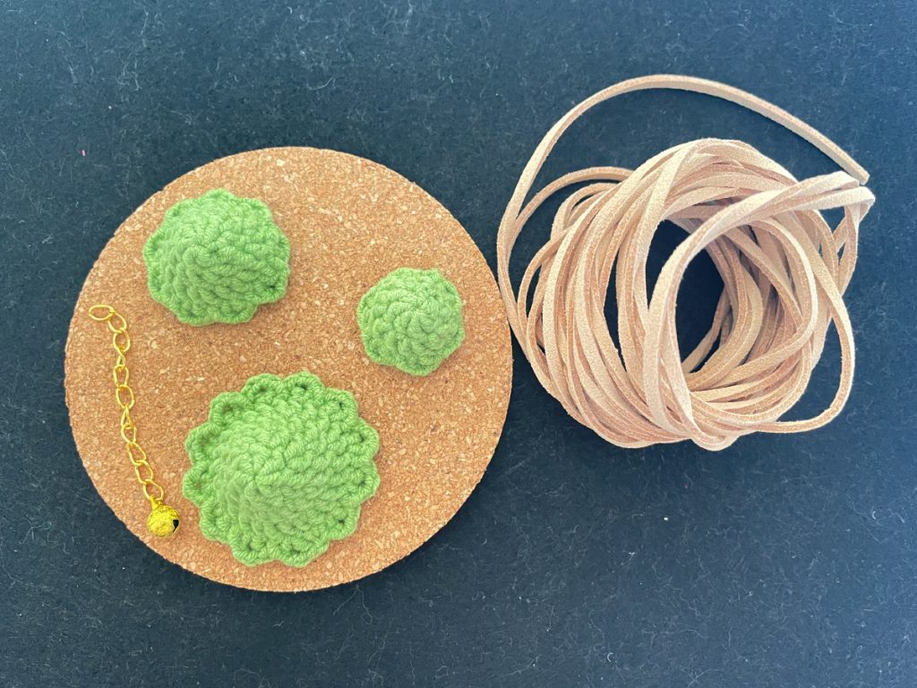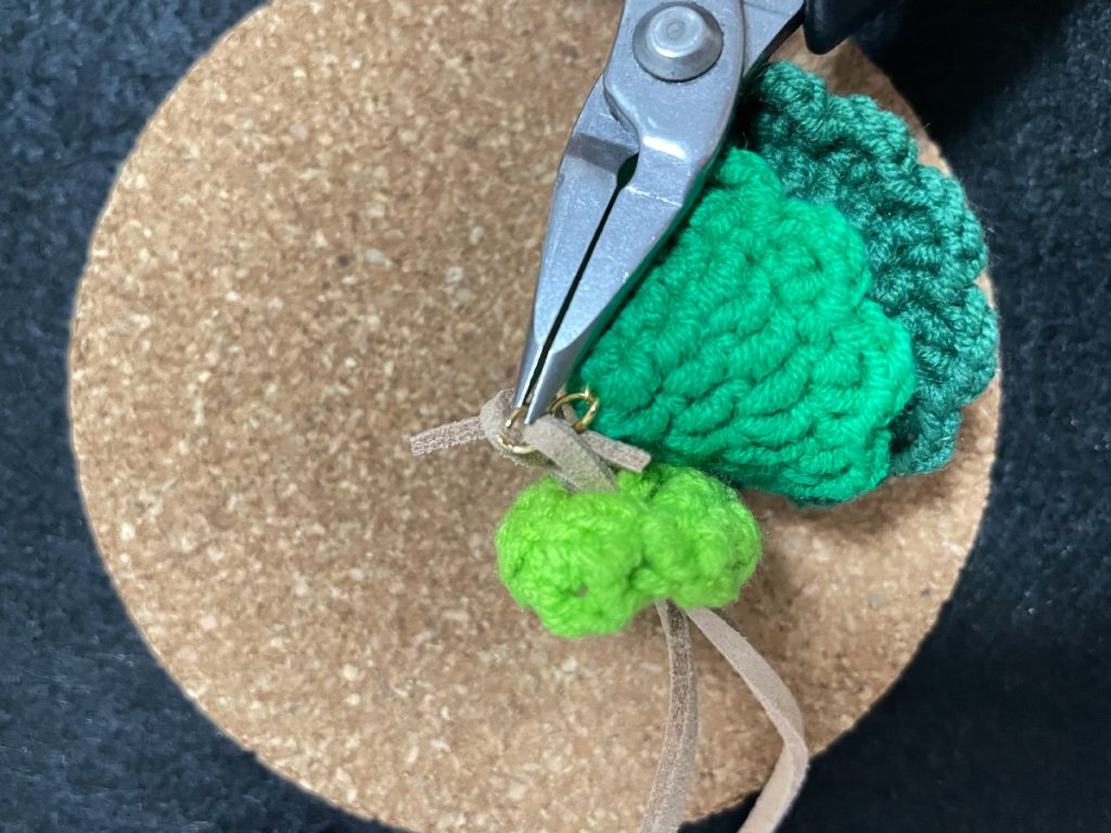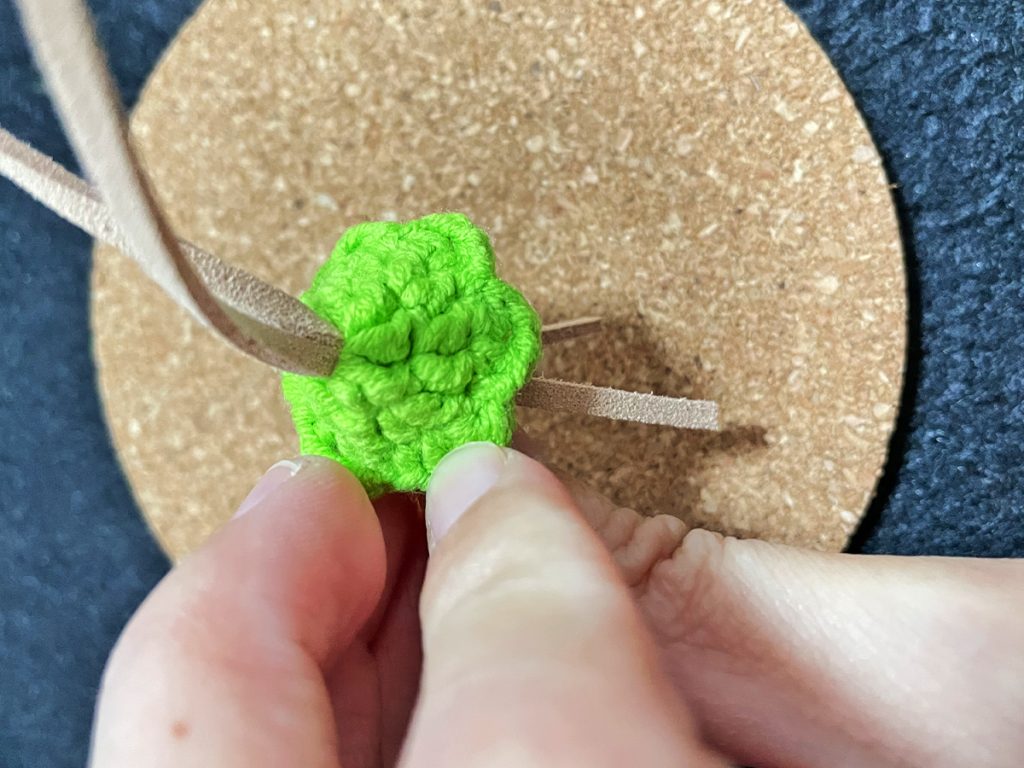 - Thread the leather cord through Layer 1 of the Christmas tree and tie a knot on the inner side.